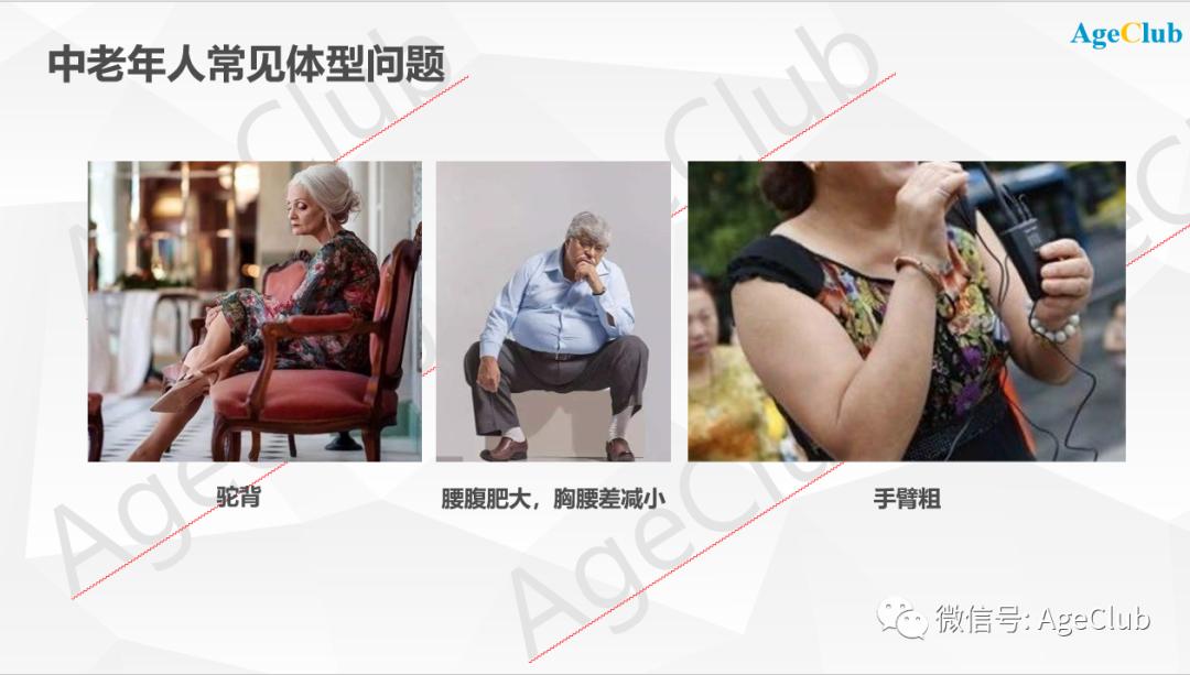 在AgeClub旗下独立咨询品牌NewAgingPro对全国大量老人的线下访谈调研中也了解到,中老年人倾向选购码数偏大的服装,虽然腰腹部合身了,但袖子和衣身普遍过长了。
