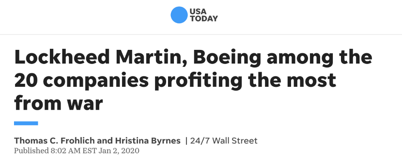 《今日美国报》报道:洛克希德·马丁、波音等20家从战争中获利最多的公司