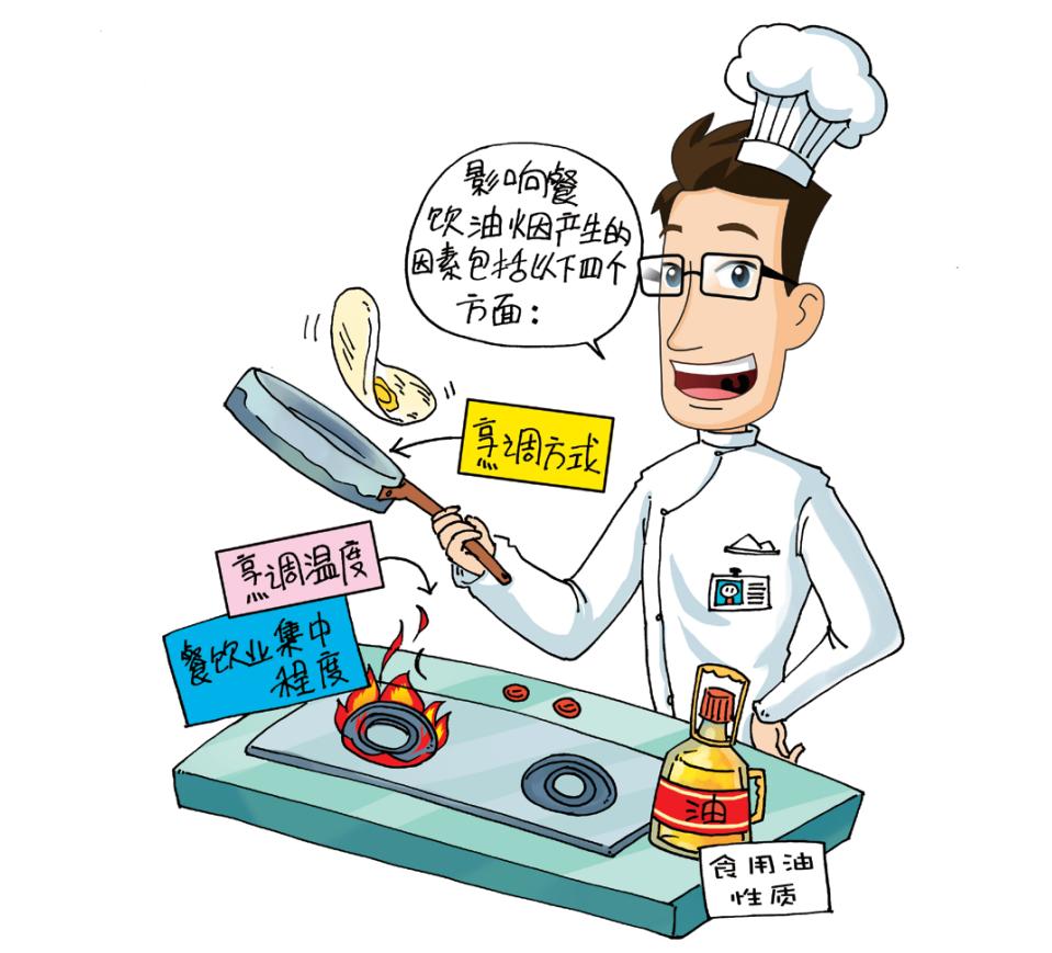 (2)烹调方式:用油量越大,火势越猛,时间越长,扰动越剧烈,翻炒越频繁,油烟的产生量越多。