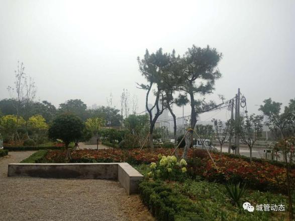 1. 位于旧人民医院南边,拆违建绿,占地900多平米,种植有月季、石楠、鸡爪槭、樱花、大叶黄杨等树种,内设凉亭,方便周边居民游玩、休憩。