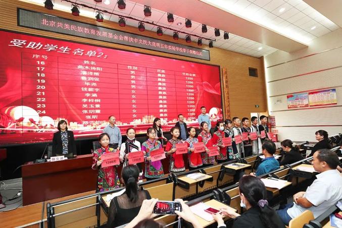 2020年7月13日,北京共美民族教育发展基金帮扶学子捐赠仪式在中央民族大学附属中学昆明五华实验学校举行,学校“云之南”创新实验班初一年级47位学子共获5万元捐助。