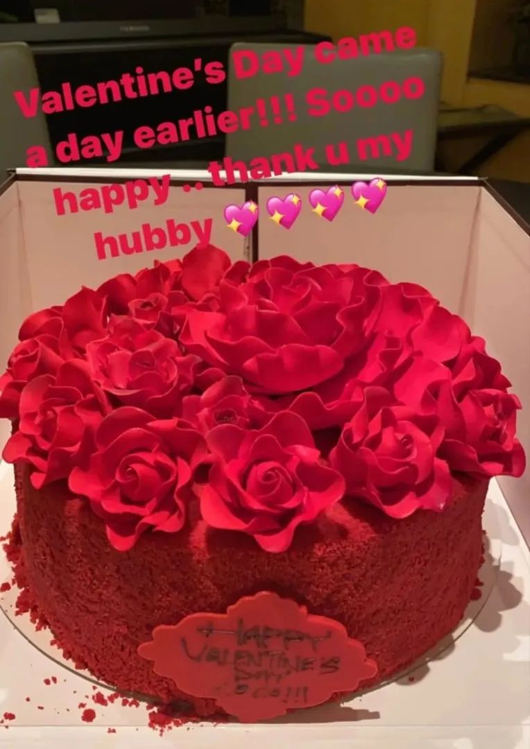 新人在场内切五层高的结婚蛋糕,该华丽蛋糕来自名店SEVVA,花了3个月时间设计及制作,蛋糕上饰满金箔、糖霜做的玫瑰及水晶等,璀璨甜蜜。
