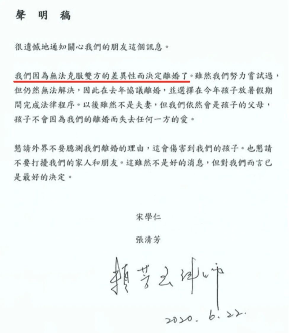 所以张清芳在离婚声明里最后的那句话很平实很硬气,“这虽然是一个不好的消息,但对我们来说已经是最好的决定。”