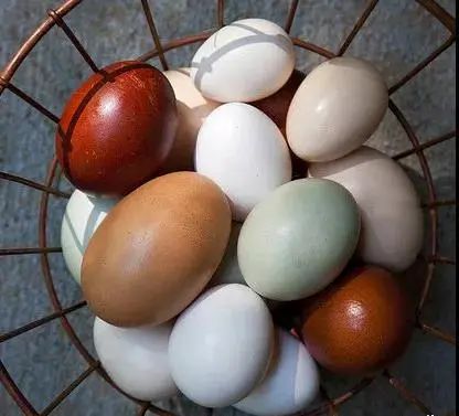 其实鸡蛋壳的颜色除了常见的白色、绿色、红色,还有蓝色粉色紫色灰色梅红色和橄榄色的,它们的营养成分差别并不大。