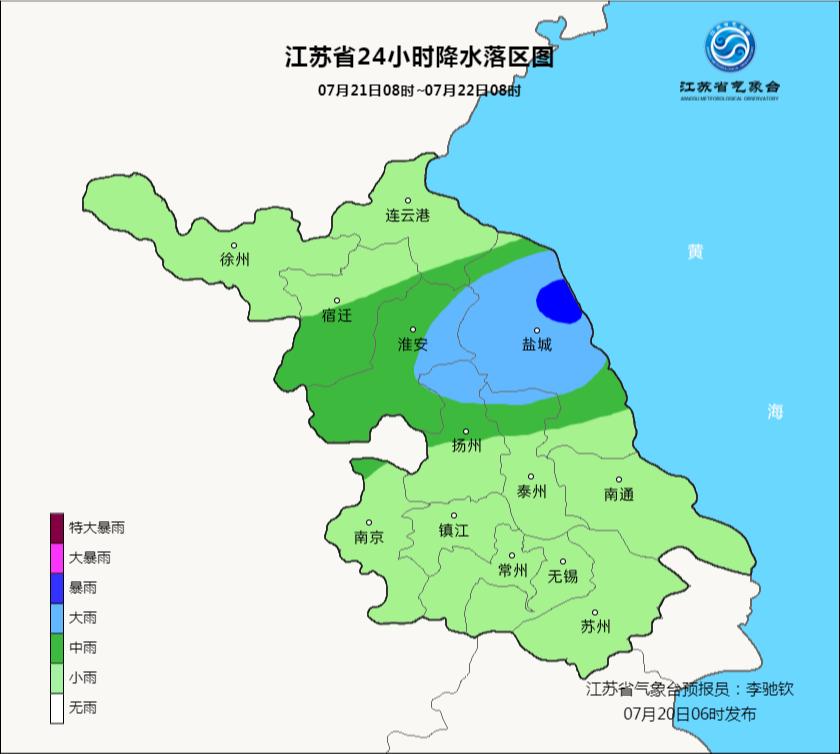 预计21-23日江苏省长江以北地区有一次较强降水过程,雨量中到大雨,部分地区暴雨,并可能伴有短时强降水、雷雨大风等强对流天气。21-23日累计雨量:淮北地区40~80毫米,局部120~150毫米;沿江及江淮之间30~70毫米,苏南地区5~10毫米。