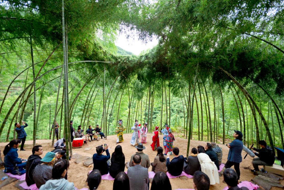 竹林剧场的形态每年会有一些变化, 竹叶的生长、生死置换,让这个竹林剧场成为一个有生命的新陈代谢体。习习凉风,伴随着竹叶“沙沙”作响。置身其中听一曲松阳高腔,享受苏东坡都未曾有的待遇!