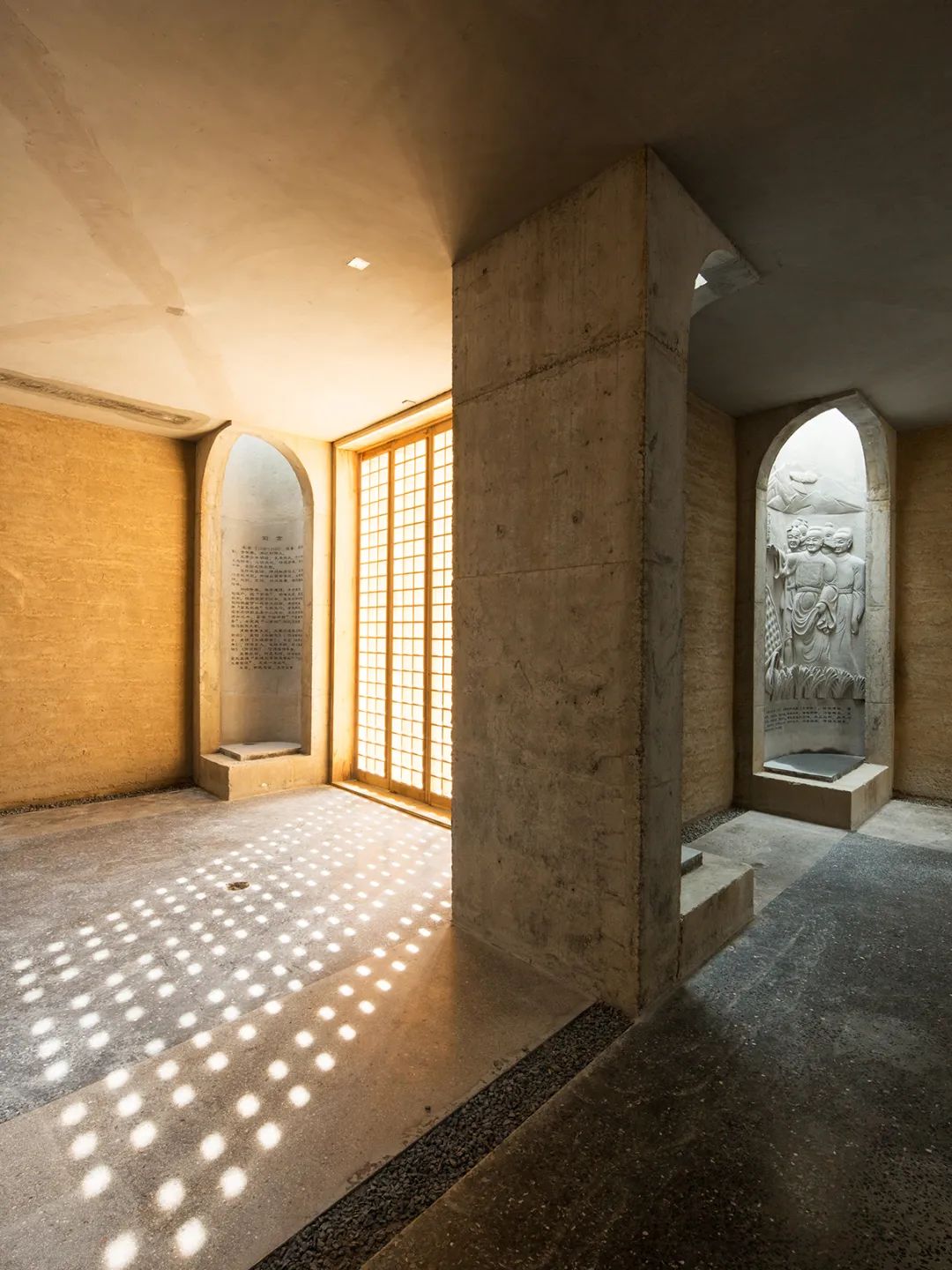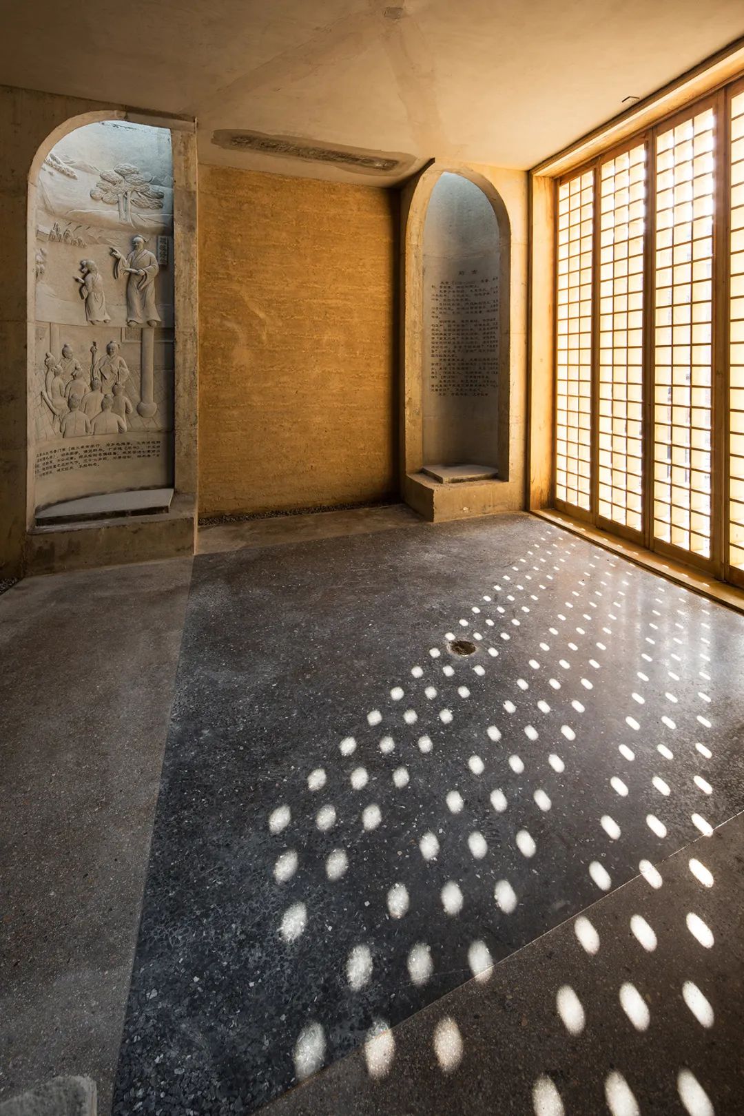 以“建筑舞台剧”的形式还原王景的一生。安静而不张扬的外观和充满戏剧感的室内空间共同将这座纪念馆变成一座神圣的舞台。