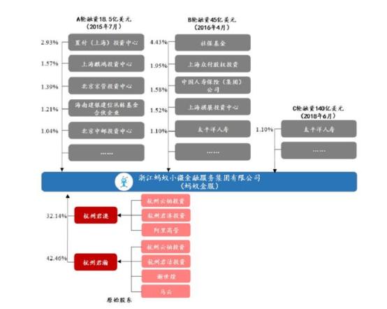 公开资料显示,目前马云在蚂蚁持股约8.8%,并拥有50%表决权;而阿里巴巴持股蚂蚁集团33%的股权,君瀚和君澳持有蚂蚁集团50%股权。