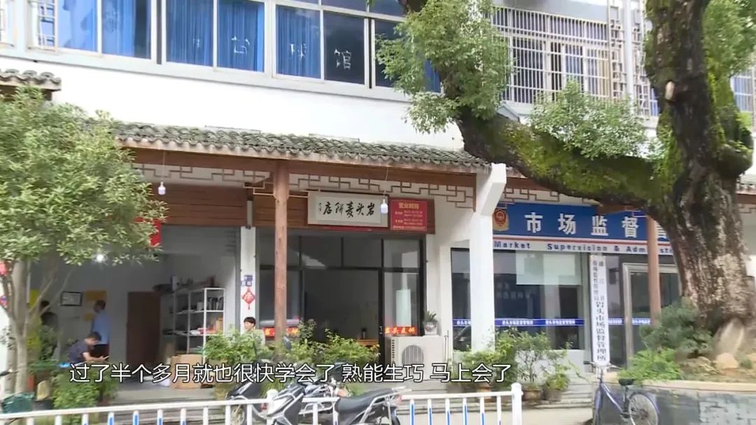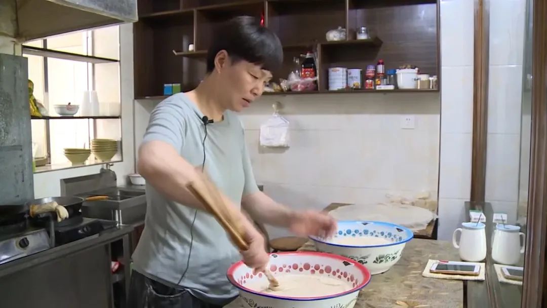 潘海英说,这家店是1999年下半年开的,当时她还不会做麦饼,于是她妈妈跟婆婆就来帮忙,帮她把这店开起来,然后边学边做,做了半个月就学会了。当时吃早饭的人没有现在那么多,村里人大概只有三分之一的人早餐是买来吃的,如今百姓的生活条件好了,麦饼的价格涨了,吃的人反而更多了。