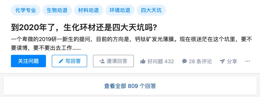 知乎,已成为国内生化环材劝退的第一阵地。