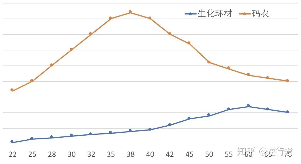 有生化环材专业的网友自嘲:“计算机都是青春饭,生化环材越老越吃香,可没人告诉你,它们的工资线根本不相交。”