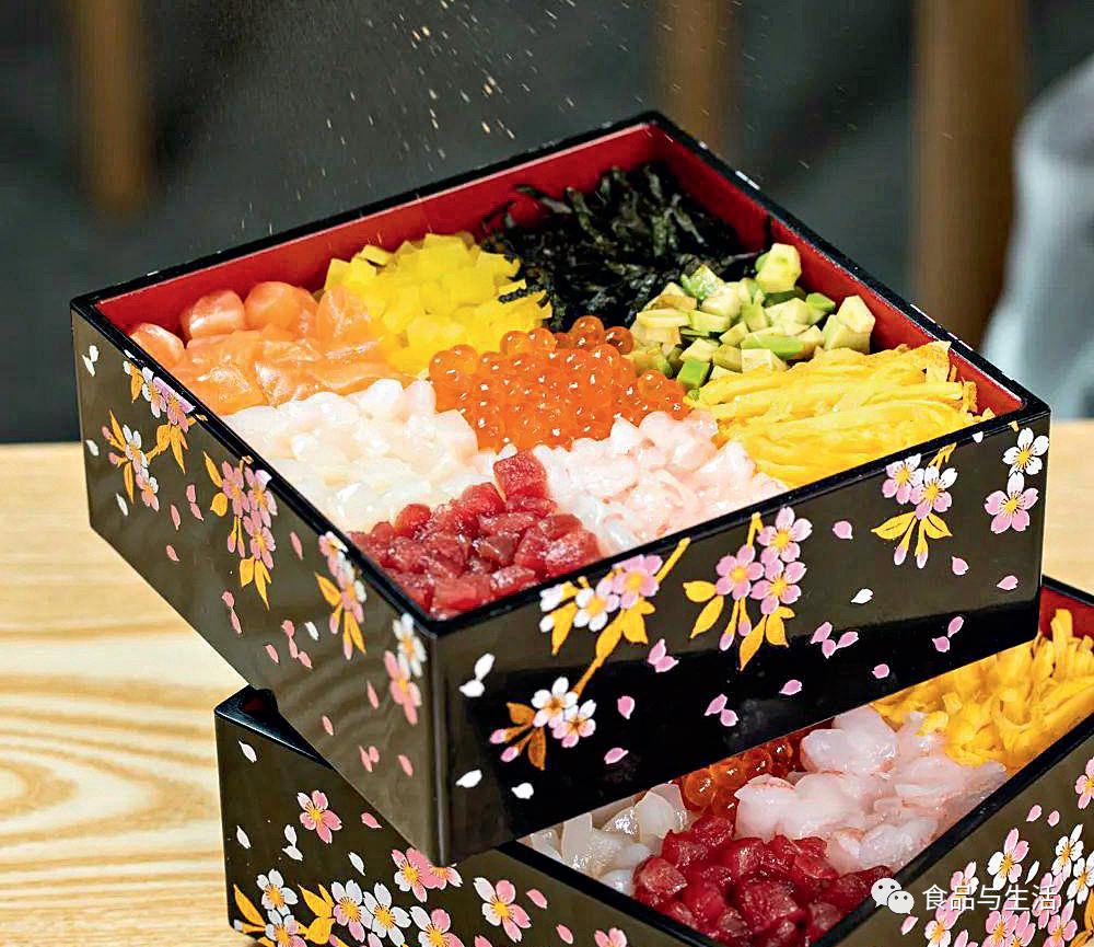 其次,九宫格寿司饭是在一个方格子底部铺平了米饭,再在米饭上端按照九宫格的形式堆放了寿司的海鲜和蔬菜等“浇头”。日本人是不能够接受这样的“寿司”的,他们宁愿称其为“丼”(dong),指的就是盖浇饭。更何况,对于日本人来说,寿司就是要卷起来的。所以,九格散寿司饭是外国人以自己对日料的理解创造的新式“外国日本料理”。