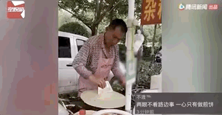 熟练地做起了煎饼