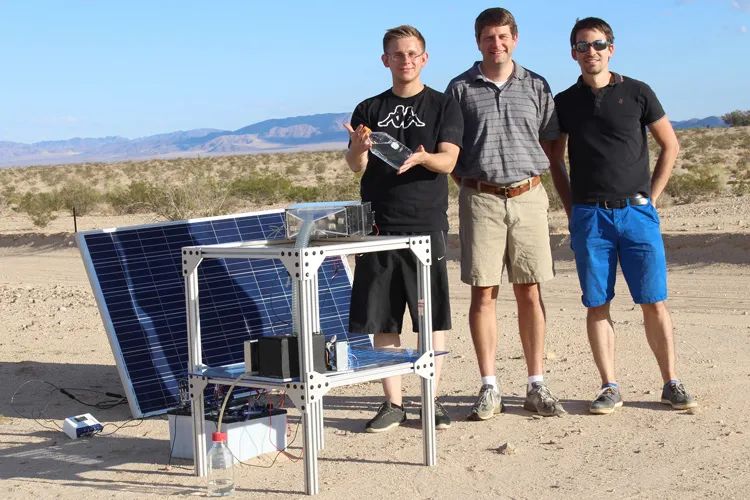 测试用的水收集器以太阳能电池板为动力,可以全天候工作。