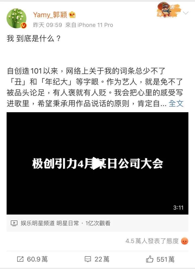 前天,一段经纪公司的会议语音让前火箭少女队长Yamy再次进入公众视野