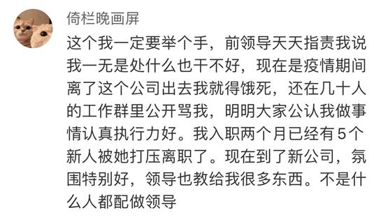 比如这位网友说,就职多少天,就被骂足多少天,做什么都是错,八年经验全部都是错,让他完全失去自信,甚至也许有时都可能忘了自己有一双能飞的翅膀。这样,老板的目的也就达到了。
