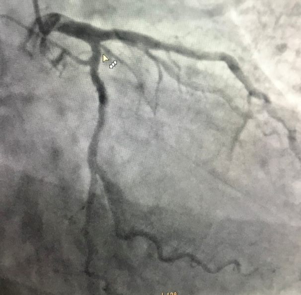 完善检查后,杨海涛副主任医师给予患者冠心病二级预防药物。效果一般,患者仍有症状。进一步为李先生冠脉造影显示:第一对角支80-90%狭窄。