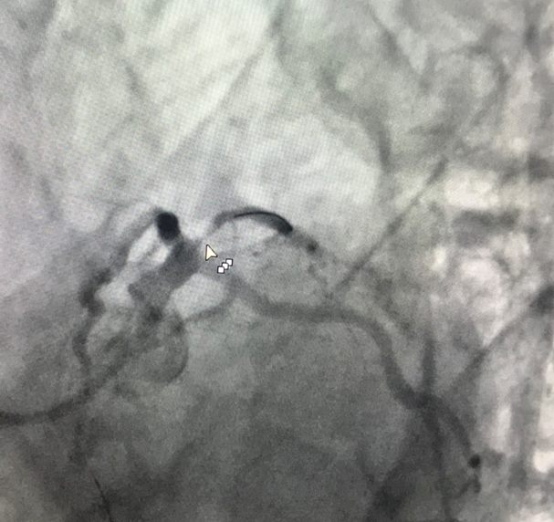 杨海涛副主任医师联合冠心病四病区杨宏辉主任会诊后,立即为患者置入药物球囊,治疗后患者症状消失。