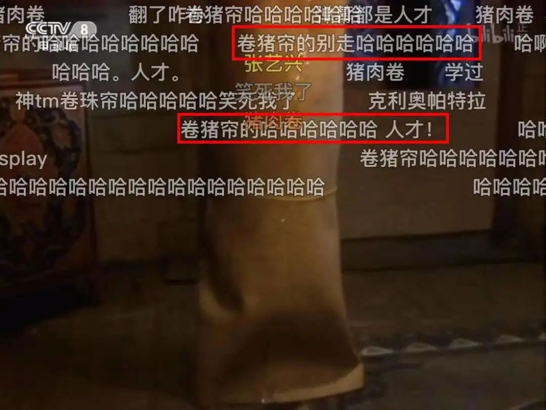 《西游记》里有一集是师徒四人被国王驱赶,一时间只能藏在旅馆里。藏在席子里的八戒,被弹幕形象地称呼为“卷猪帘”。