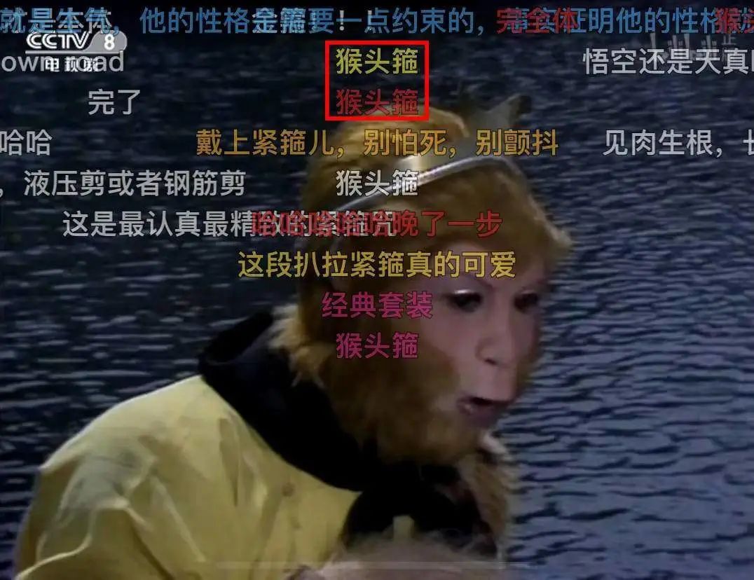 后来猴哥戴上了紧箍咒,弹幕里除了认真地讨论如何用现代技术弄断金箍之外,还将这段名场面命名为:猴头箍。
