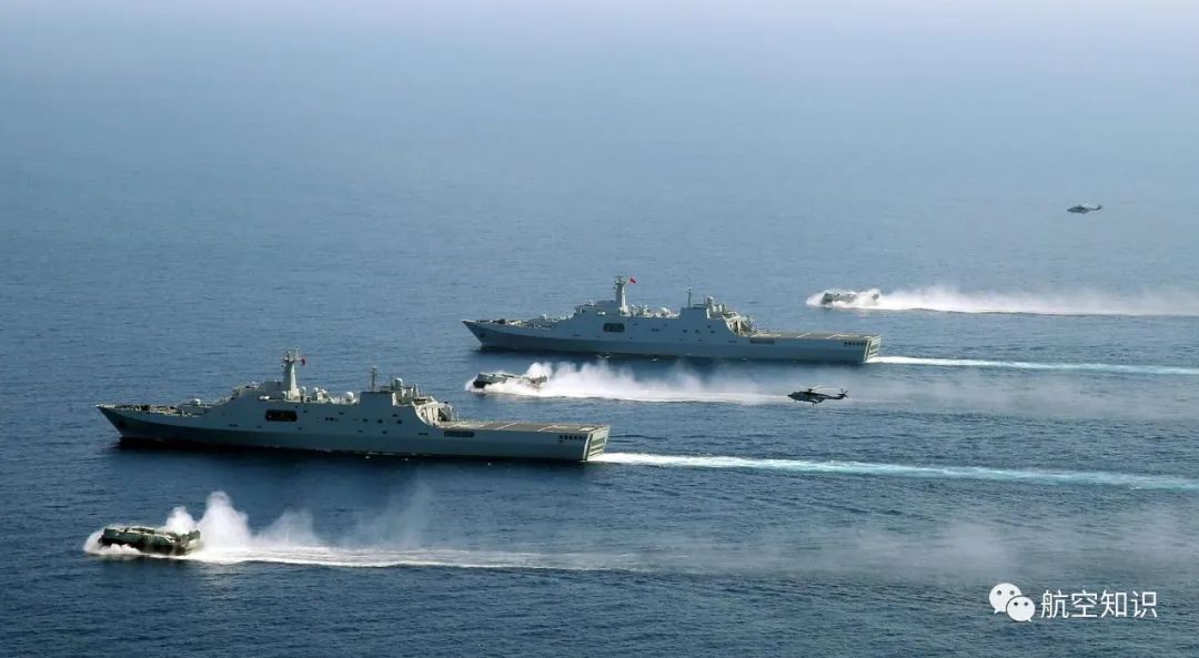 除了传统二维“海-陆”登陆模式外,随着071型船坞登陆舰的批量服役,075型两栖攻击舰的下水,以及直10、直19武装直升机,直20通用运输直升机等新型旋翼平台的列装,解放军也已经初步具备了三维“海-空-陆”垂直登陆作战能力。尤其是075型两栖攻击舰,以该级舰为核心打造的“三栖”作战群,将首次赋予解放军在脱离本土海岸线直接支援的蓝水海域执行登陆任务的能力。