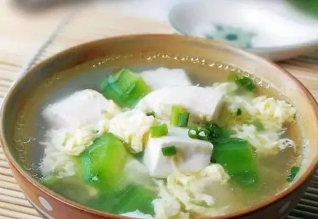 丝瓜、鸡蛋、豆腐、姜末、葱花