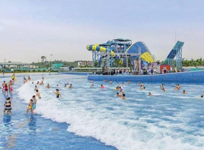 胜境温泉水上乐园占地17756平方米,有大型造浪池、大喇叭滑梯、彩虹滑梯、水寨等项目。