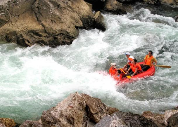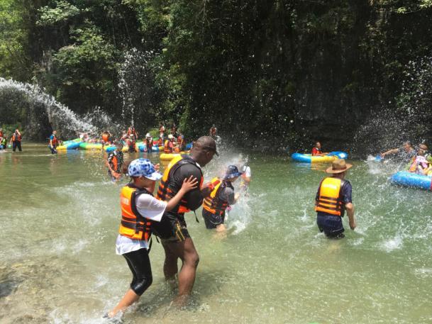 荔波水春河漂流全长6公里,总落差100多米,最大落差十余米。是风景区最长的一条峡谷,奇峰绝壁夹江锁岸,构成了“十三道浪,七重滩”的奇险景观,成为漂流历险的胜地。