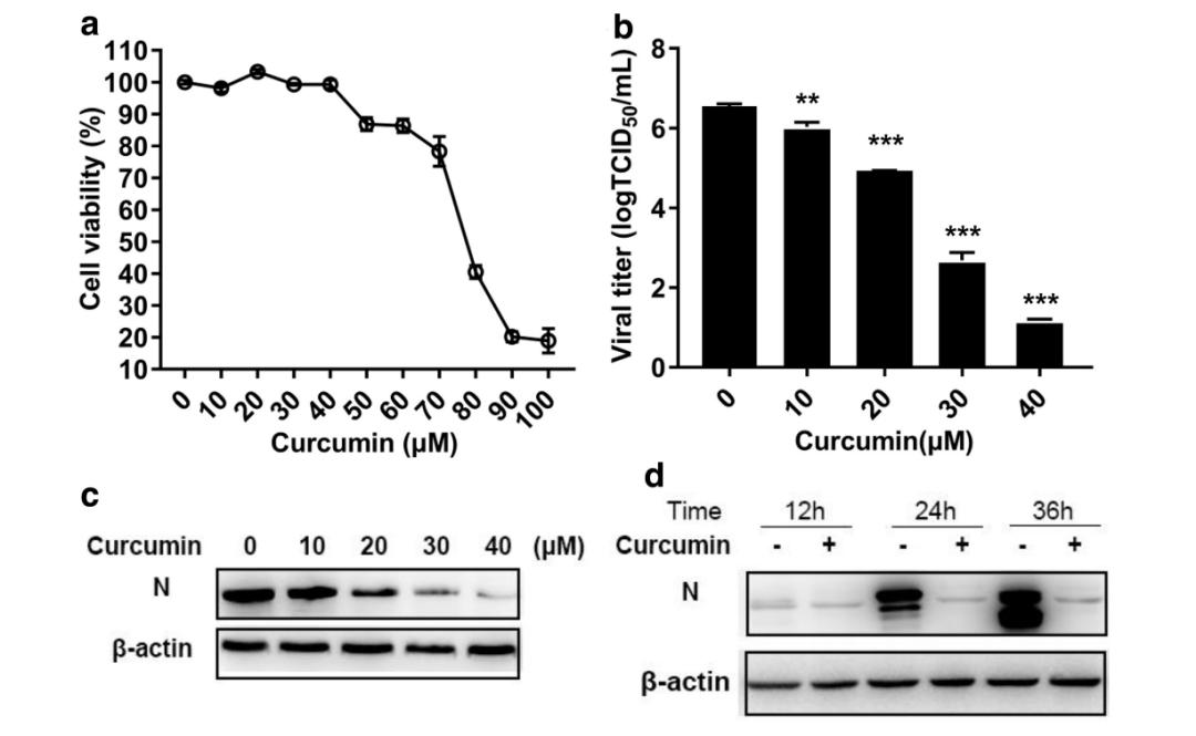 在此项研究中,研究小组用不同浓度的姜黄素处理实验细胞,然后再用TGEV感染它们。研究人员发现姜黄素以剂量依赖性的方式强烈抑制TGEV的增殖和及其病毒蛋白表达,并且他们还观察到姜黄素以剂量、温度和时间依赖的方式显示出直接的杀病毒能力。