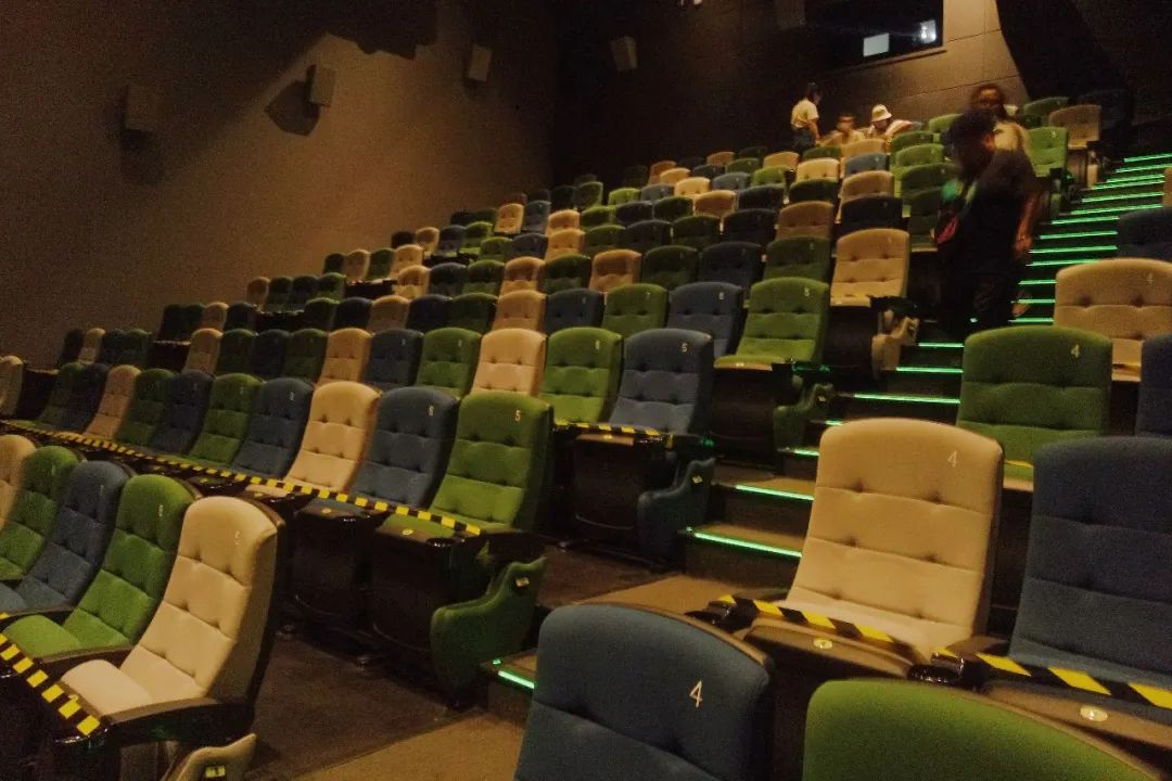 本来担心两个人第一次看电影还要被分开,结果发现影院里有少量的两个连座,很庆幸。不过一直戴着口罩,还要戴3D眼镜到后面有点头闷眩晕,稍微透了会气又戴上了,很怂但也为了安全。前后左右没人,我们也可以小声交流不怕影响到别人。