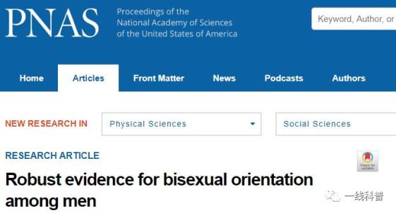 2020年7月20日,美国西北大学的研究人员在美国科学院院刊PNAS在线发表了一篇名为《Robust evidence for bisexual orientation among men》的研究论文。