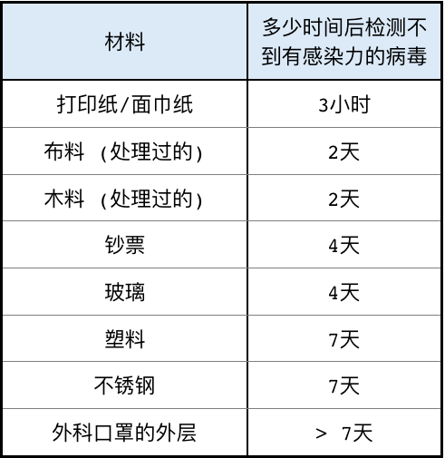在铜表面,4小时后就检测不到有感染力的新冠病毒了。在纸板上,24小时以后检测不到有感染力的新冠病毒。