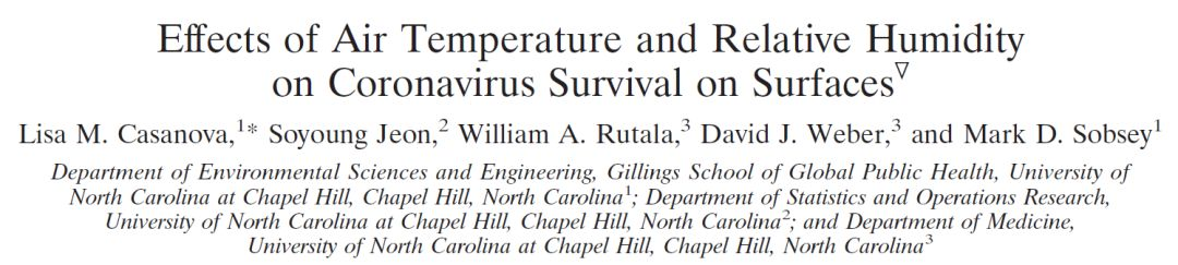 [3] L. M. Casanova, S. Jeon, W. A. Rutala, D. J. Weber, M. D. Sobsey, Effects of air temperature and relative humidity on coronavirus survival on surfaces. Appl Environ Microbiol 76, 2712-2717 (2010).
