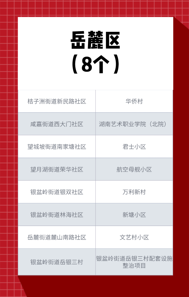 附:今年长沙拟改造的123个城镇老旧小区名单