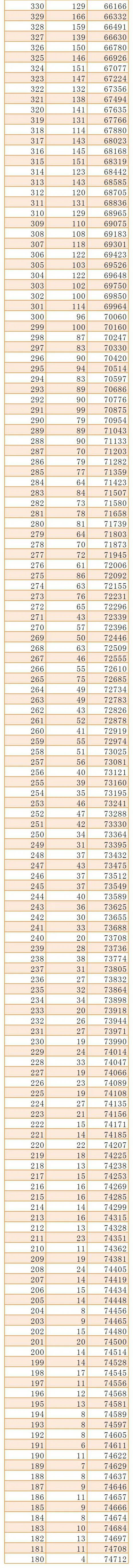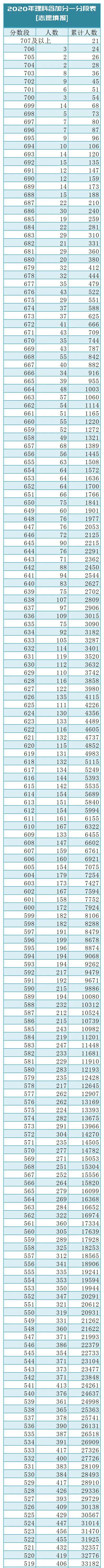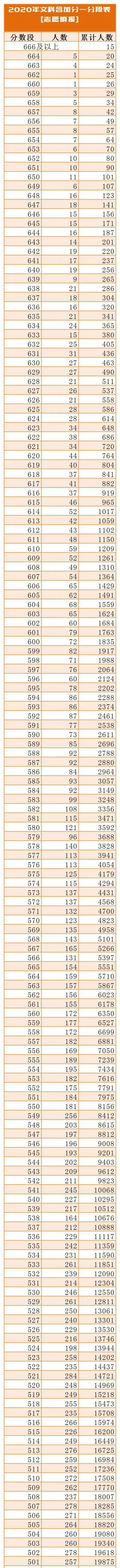 2020年文科含加分一分段表