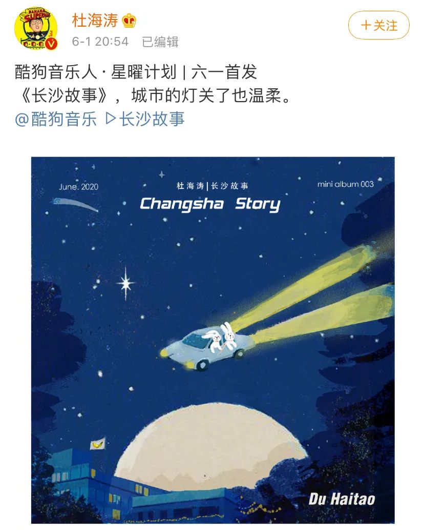 杜海涛在酷狗音乐自助发行单曲专辑《长沙故事》
