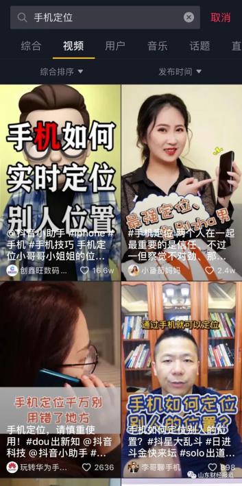 在短视频平台,除了手机定位软件推送广告外,记者在短视频网站搜索“手机定位”发现,“一招教你如何定位男朋友”、“如何防止女朋友定位你”……诸如此类关于定位与反定位话题的小视频比比皆是。