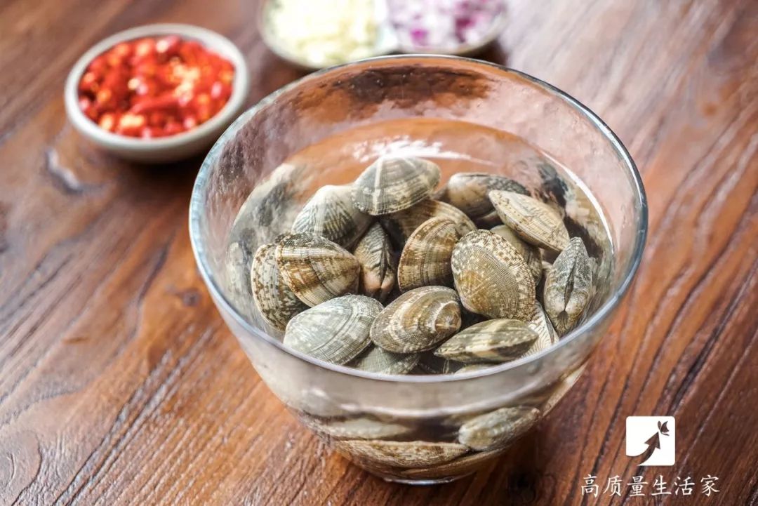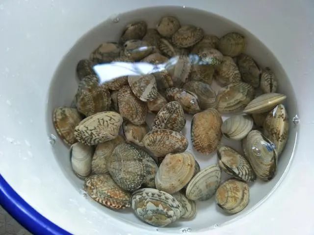 用温水浸泡花蛤,一定要用温水(40℃)而不是热水。