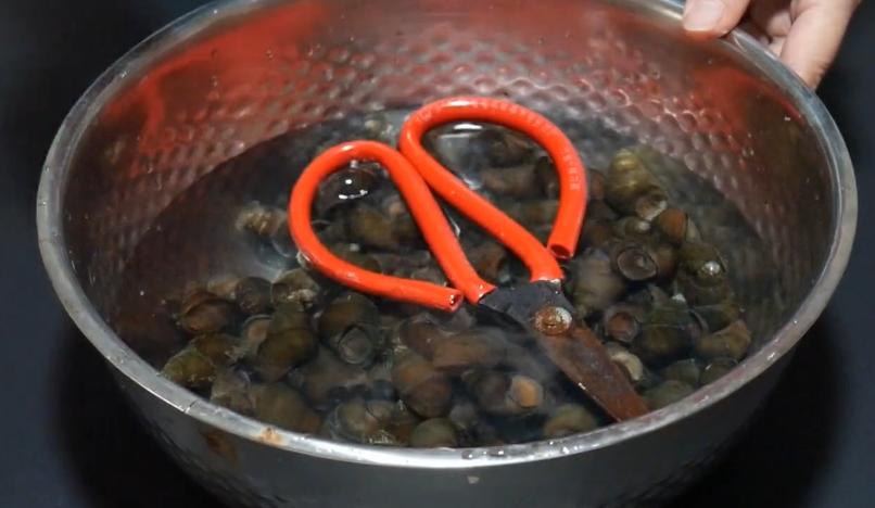 ❸ 如果家里有钳子的,可以将田螺的尾部剪掉,这样可以使田螺吃着更加入味。