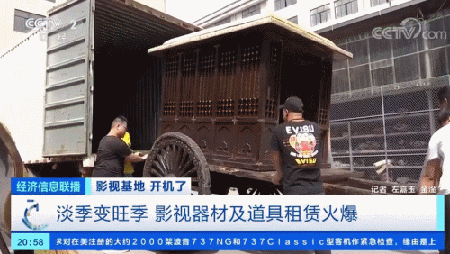 早上九点钟,在横店一家道具公司,搬运的师傅正在紧张忙碌着。道具公司负责人刘先生表示,这已经是今早师傅们第二次来搬运道具。