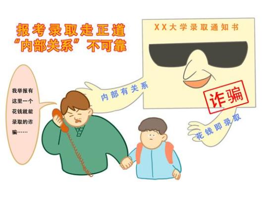 2020年江苏高考已于7月24日开放查分入口,后续考生填报志愿和高校录取等工作即将展开。以往这个时段,也是各类涉高考招生诈骗的高发期。“花钱进名校”“内部有指标”“提前发奖学金”等各式骗法经常上演。近年来,随着技术发展,不法分子诈骗手段不断翻新,一些招生诈骗甚至披上信息化的外衣。教育、公安部门提醒广大考生和家长,切实提高警惕,增强防范意识,提防招录“陷阱”,谨防受骗上当。