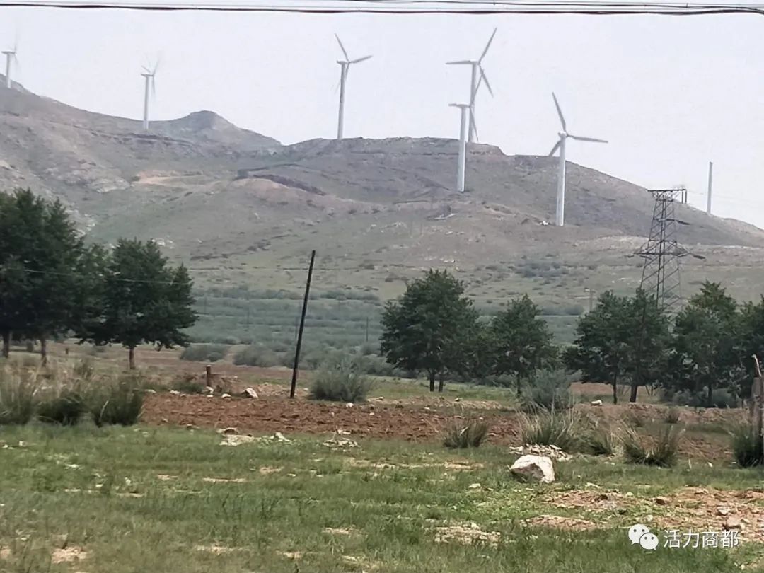 告别了亲戚,我们又驱车到了元宝山下。仰入眼帘的是:山上立起了许多风电杆,叶片在空中自由自在地旋转;老鹰在蓝天上盘旋傲翔;花丛中蒿草里,黄鼠瞭望,野兔打盹;百灵鸟飞舞歌唱,似乎在说:“我们又回来了,欢迎欢迎!”。山坡下是一望无际的、用防护林带间隔开的一块块不同形状的农田。沿不冻河两岸种植的各种树木和经济林,象一条美丽的彩绸,紧紧的裹系在商都大地的腰间。