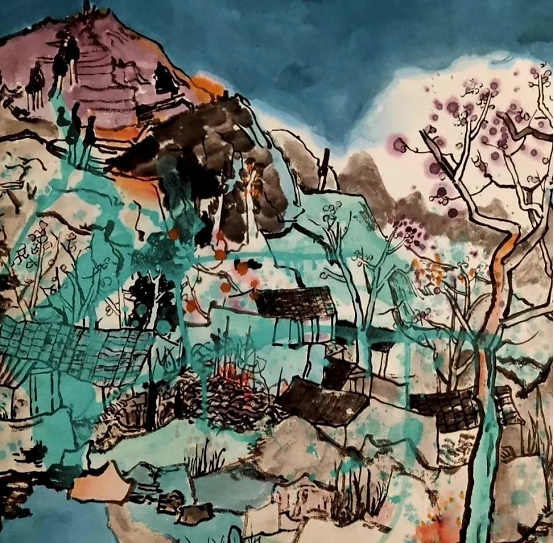 张跃玫的现代彩墨山水画更多地注重色与墨的结合,强调色墨共生,逐渐升华为一种热烈、绚丽、鲜活的色彩观。近年来,她又加强线条的运用,以线穿插色墨间使画面更加跳跃,这些品味在嚣薄的现代生活中,是一种极其优容、极其雅调的别格。