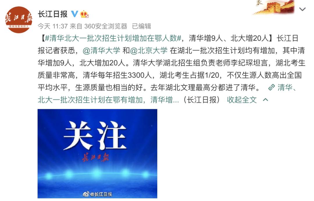 原标题:《罕见!清华北大向湖北扩招这类考生》
