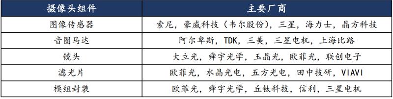 音圈马达(推动镜头移动实现对焦,通过移动镜头可以得到清晰的照片),在摄像头组件成本中占比 6%;