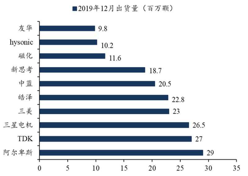 VCM 技术壁垒低,市场结构分散。VCM 的技术并不复杂,但由于对灵敏度的要求较高,所以生产时的精度控制是关键,这涉及到设计、材料等各个环节的改进。正因为VCM 技术难度并不高,所以全球参与 VCM 产业的厂商有上百家,市场较为分散,根据第一手机界研究院数据, CR3 仅为 44.4%,未超市场的一半,没有绝对的龙头,市占率最大的阿尔卑斯也仅有 17%的分额,市场呈现多寡头对峙格局。根据旭日大数据, 2019年 12 月全球 VCM 出货量前三的厂商分别为阿尔卑斯( 2900 万颗)、 TDK( 2700 万颗)、三星电机( 2650 万颗),但与后续几名差距不大。