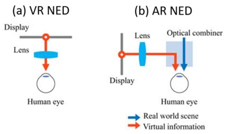 微型显示器和光学元件组合是 AR 眼镜成像关键。一般来说,对于 AR/VR 等智能眼镜的硬件部分由近眼显示( NED)、应用处理系统( AP)、外观设计等构成,其中近眼显示(Near-eye Display,简称 NED)是 AR/VR 硬件设备的核心所在,旨在将显示器上的像素通过光学元件成像,形成虚像并投射在人眼中。其中, AR 相比于直接显示虚拟图像的 VR 技术来说,因其成像系统不能挡在视线前方,需要实现透视,所以需要多加一组光学组合器以“层叠”的形式,将虚拟信息和真实场景融为一体。目前, AR 眼镜的显示系统多为包括 LCOS、 LBS、 Micro OLED 等微型显示屏和棱镜、自由曲面、光波导、Birdbath 等光学元件的组合,这些光学元件是决定 AR 眼镜成像效果的关键。