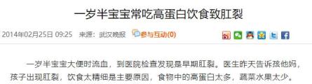 武汉晚报就报道过一则1岁半宝宝大便时流血,检查发现是早期肛裂的新闻:
