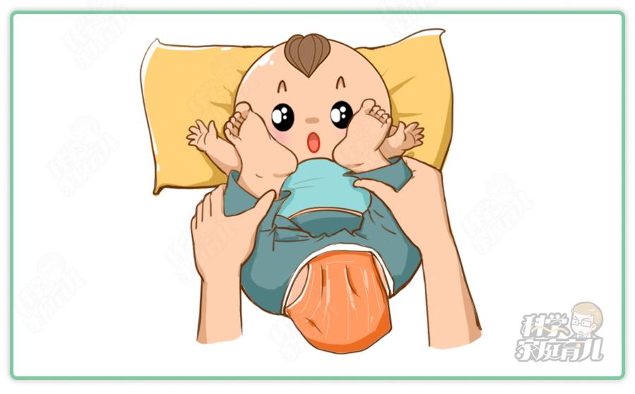 出现此情况的宝宝大多会有肠胀气,可以给宝宝做个排气操: