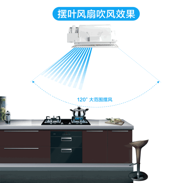 简单来说,凉霸就是安装在厨房吊顶里的风扇!它是一种能够促进空气循环的装置,通过倒风百叶旋转来送风。